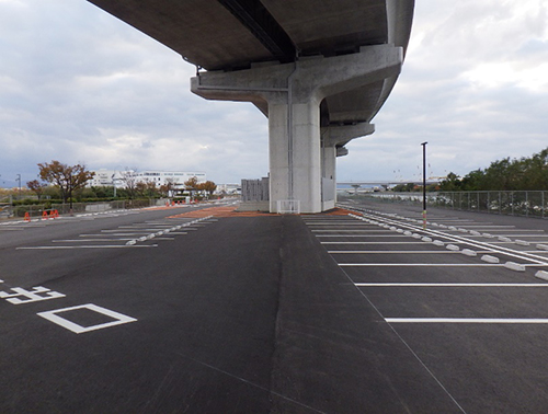 本工事は香椎浜の都市高速道路下の駐車場新設工事でした。