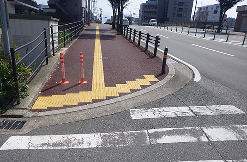 アスファルト合材は市街地でもありカラー合材を使用しました。